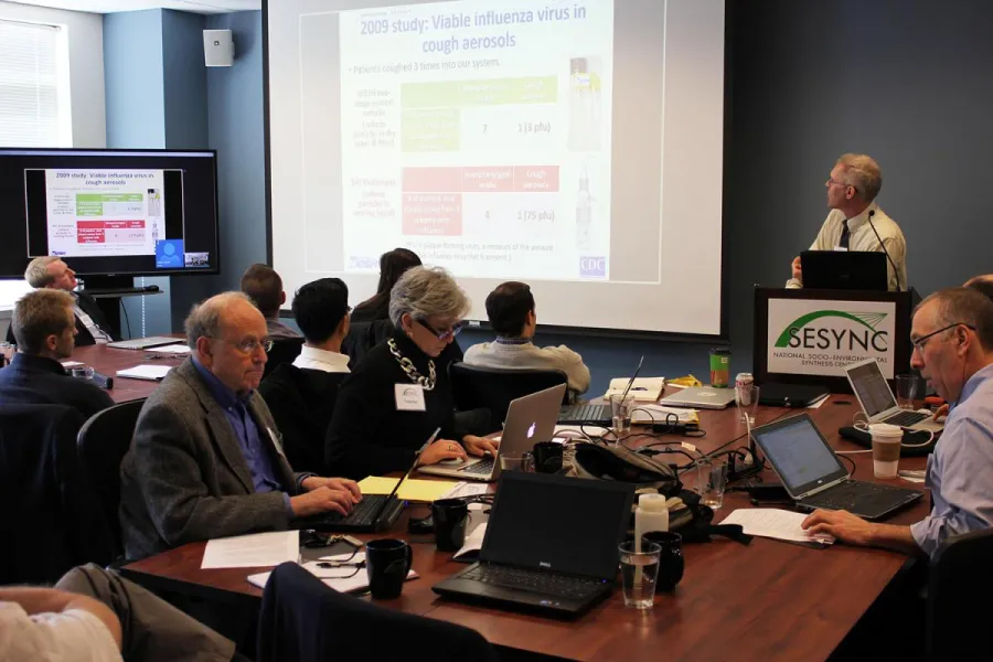 A primary goal of airborne precautions, he says, is to make schools, malls, and all other buildings safe places to be during a pandemic, to the benefit of both public health and the local economy. How? The right ventilation system can actually reduce rates of airborne illnesses, including the flu. It’s this goal that served as an impetus for a recent workshop hosted at SESYNC focused on how we design, build, operate, and maintain built facilities from a pandemic perspective.